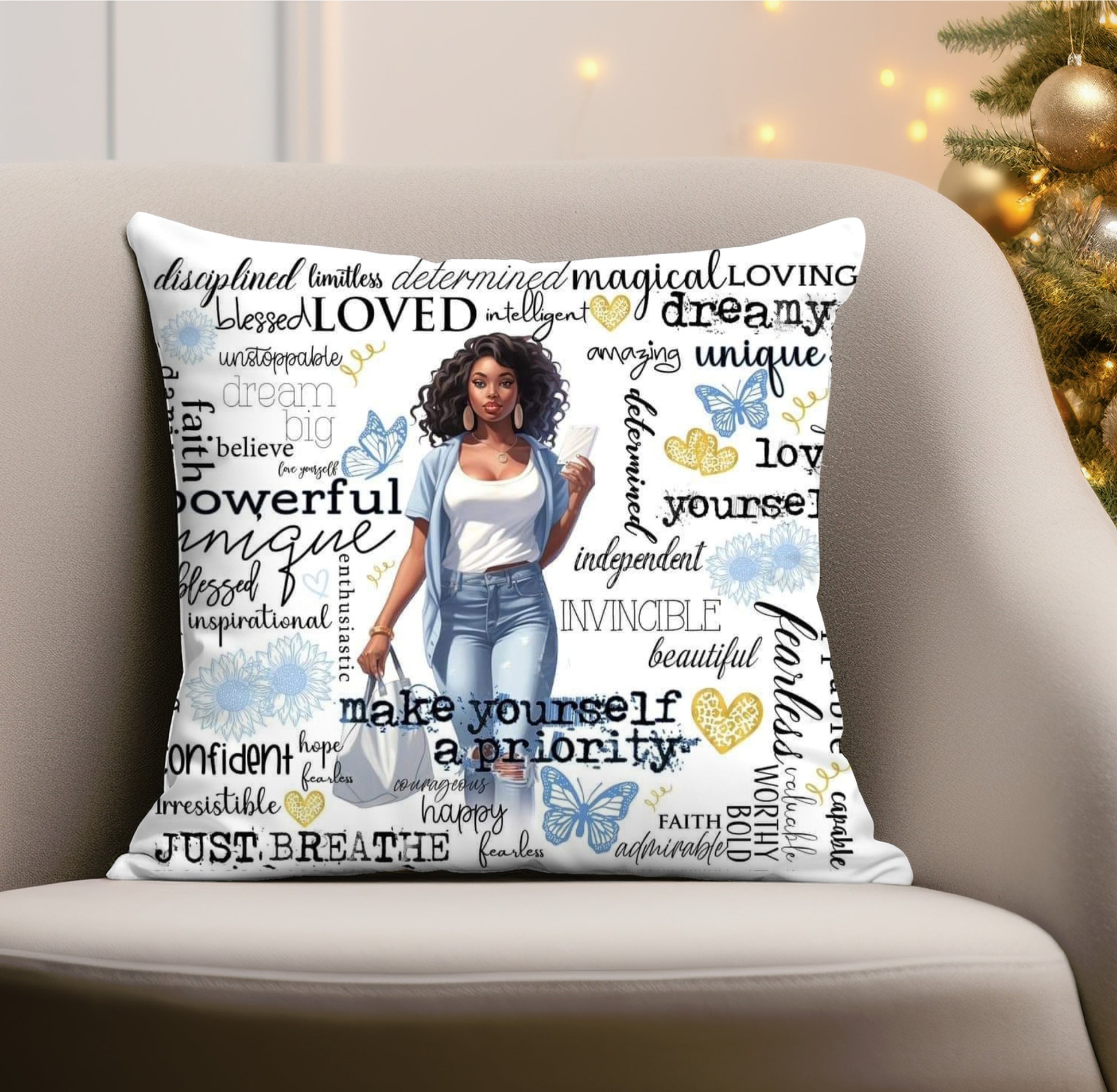 Because we can all use a positive affirmation from time to time. These Beautiful 15x15 pillows are a perfect way to remind ourselves that we are enough. Pillows are washable, With a removable, hypoallergenic pillow insert.