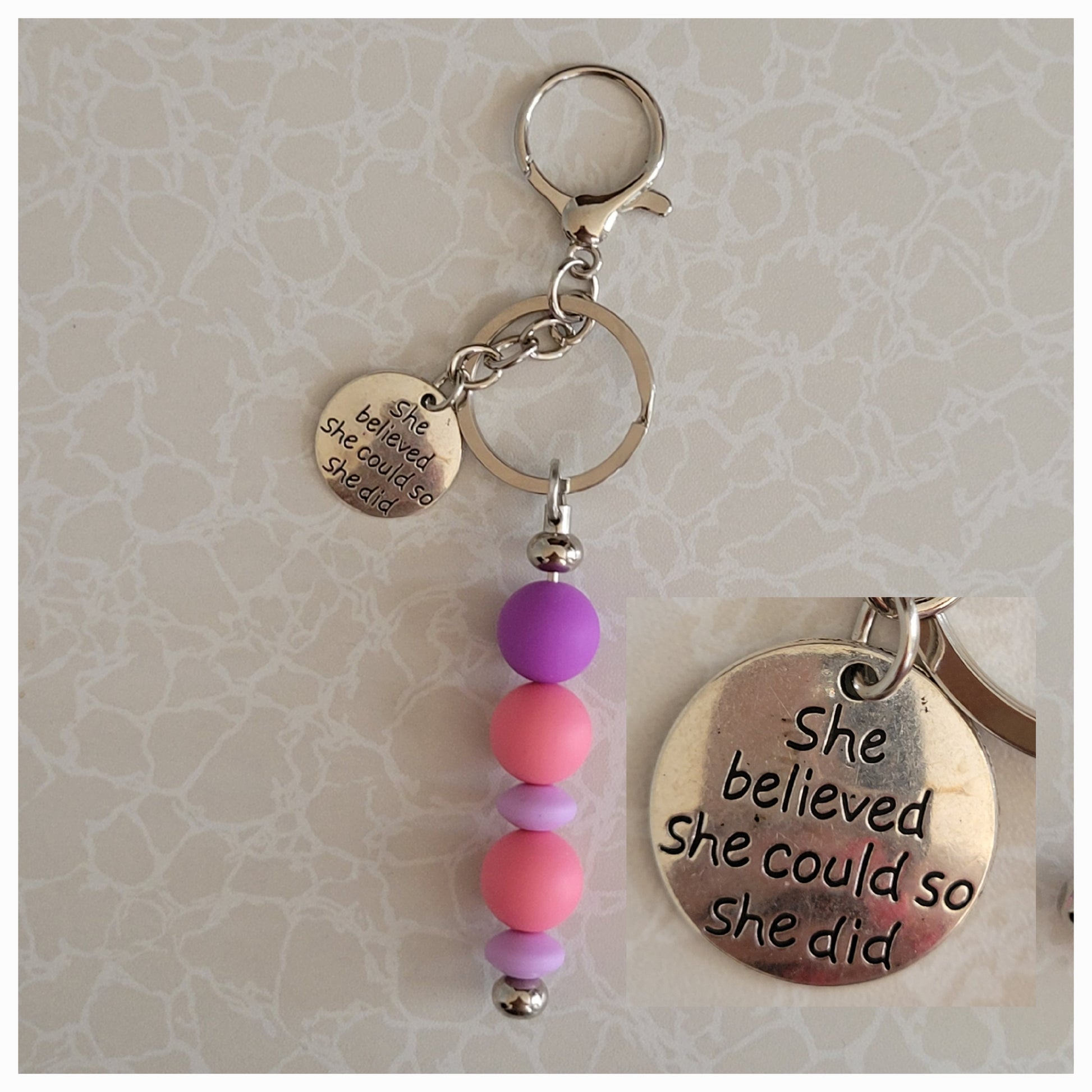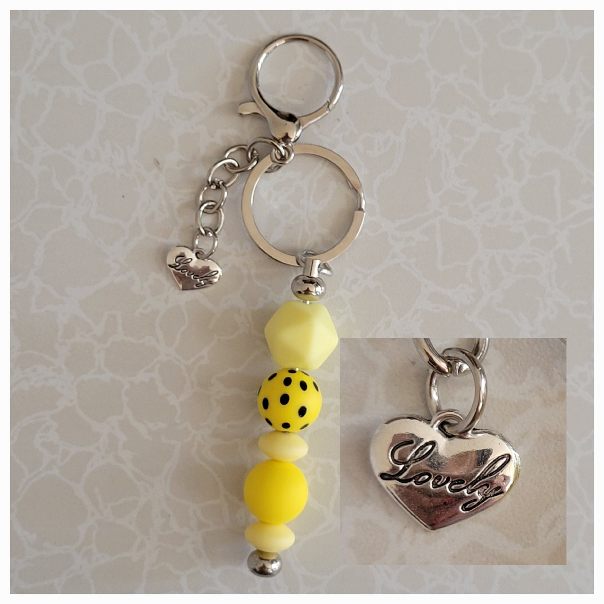 Beaded Keychains. All come with a clasp to attach to your purse. Durable and Pretty. Great as a gift.